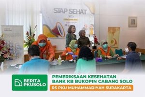 Mengawali Bulan September 2022 tepatnya di Hari Kamis, 1 September 2022 Bank KB Bukopin Cabang Solo bekerja sama dengan RS PKU Muhammadiyah Surakarta menyelenggarakan PROGRAM SIAP SEHAT PT. BANK KB BUKOPIN, TBK CABANG SOLO dengan dilaksanakannya pemeriksaan cek darah sederhana kepada 56 nasabah pensiunan yang sedang mengambil uang pensiunan di kantor pelayanan Bank KB Bukopin Cabang Solo.
