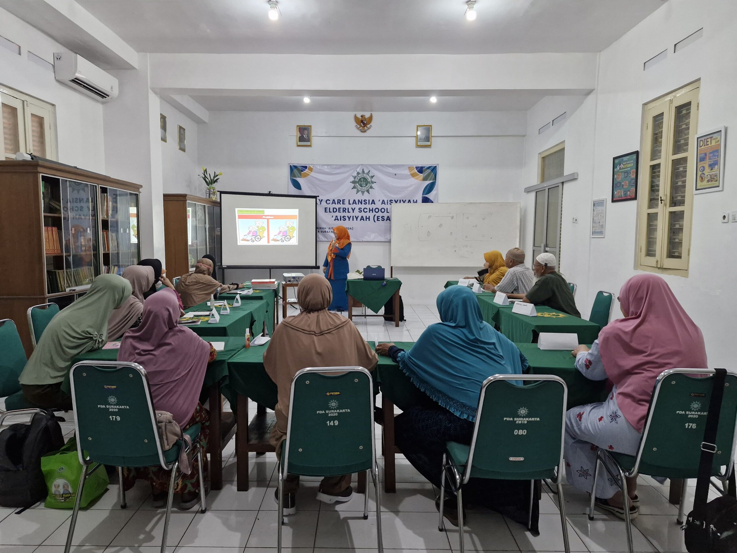 Pada sesi perdana, tim medis dari RS PKU Muhammadiyah Surakarta melaksanakan sesi pemeriksaan kesehatan berupa cek tekanan darah, gula darah, kolesterol, dan asam urat bagi peserta program ESA di Gedung PDA Kota Surakarta. Kegiatan ini dilanjutkan dengan edukasi dan konsultasi kesehatan oleh dr. Wasifah, MARS, yang memaparkan pentingnya deteksi dini kondisi kesehatan melalui medical check-up berkala, terutama pada usia lanjut (25/07/2025).